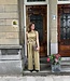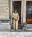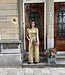 Ambika set Kyana/Kyra. De top is korter en heeft een elastieken onderkant. De broek is een wijder model met plooien bij de taille. De top is 53 cm breed en 53 cm lang en de broek is 110 cm lang en de taille is 38 cm. Gemeten bij een maat M. Materiaal is 100% polyester.