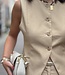 Ambika gilet Mia. Het gilet is een langer model met 4 knopen. Het gilet is van een gladde stof en in meerdere kleuren verkrijgbaar. De lengte is 62 cm en de breedte is 46 cm. Gemeten bij een maat M. Materiaal is 96% polyester en 4% spandex.