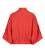 EsQualo jacket s/slve slub SP26.10032 chili red. Kort jasje met drukkers 3/4 mouw en elastiek aan de onderkant. Materiaal: 75% tencel. 13% nylon & 12% Polyester.