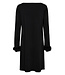 Freequent jurk FQELVA-DRESS. De jurk is van een gladde stof met wijde hals en fake fur accent aan de onderkant van de mouwen. Materiaal is 95% polyester en 5% elasthan.