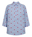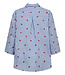 Freequent top FQROSAN. De top heeft een blauwe streep print en een accent van geborduurde hartjes. Materiaal is 100% katoen.