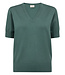 De trui is van een mooie dun gebreide stof en heeft een vhals en korte mouwen. In meerdere kleuren verkrijgbaar. De lengte. Materiaal is 82% viscose. 16% polyamide en 2% elasthan.