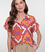 Geisha blouse 63247-20. De blouse heeft een vrolijke print en korte mouwen. Materiaal is 84% viscose en 16% polyamide.