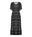 Geisha jurk 67114-20. De jurk is een langer model met een beige print en een elastische smog accent in de middel. Materiaal is 100% viscose.