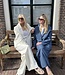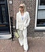 Mitch blazer bowie. Oversized blazer in kleur Off White. Blazer heeft beetje schoudervulling. Gemeten op maat S/M oksel tot oksel is 55 cm en 72 cm lang. Materiaal: 94% polyester en 6% spandex. Blazer heeft bijpassende broek. Model draagt maat S/M.
