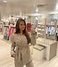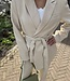 Mitch blazer 7419. De blazer heeft een knoopceintuur en een overslag met knopen. Mooi met de bijpassende broek. De lengte is 79 cm en de breedte is 49 cm. Gemeten bij een maat M. Materiaal is 96% polyester en 4% elasthan.
