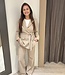 Mitch blazer 7419. De blazer heeft een knoopceintuur en een overslag met knopen. Mooi met de bijpassende broek. De lengte is 79 cm en de breedte is 49 cm. Gemeten bij een maat M. Materiaal is 96% polyester en 4% elasthan.