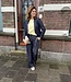 Mitch blazer V354. De blazer heeft een donkere denim look met 1 knoop en 2 zakken. Leuk met bijpassende broek. De lengte is 72 cm en de breedte is 50 cm. Gemeten bij een maat M. Materiaal is 70% polyester. 25% viscose en 5% elasthan.