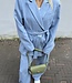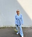 Mitch blazer 7419. De blazer heeft een knoopceintuur en een overslag met knopen. Mooi met de bijpassende broek. De lengte is 79 cm en de breedte is 49 cm. Gemeten bij een maat M. Materiaal is 96% polyester en 4% elasthan.
