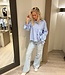 Mitch blouse CH5136. De blouse heeft een mooie streep print en een strik accent op de mouwen. De lengte is 69 cm en de breedte is 57 cm. Gemeten bij een maat M. Materiaal is 100% polyester.