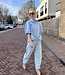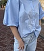 Leuke blouse met pofmouw. Blouse heeft een kraag. oksel tot oksel is 47 cm en lengte 68c cm. Materiaal: 100% katoen.