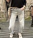 Model: 9260/6. Grijze barrel jeans met omslag aan de onderkant. Gemeten in maat S-> taille 36cm en de lengte is 94cm. Materiaal: 65% cotone. 29.5% polyester en 2% elastaan.
