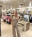 Mitch pantalon. De pantalon is een wijder model met plooien in de taille. Mooi met de bijpassende top. Materiaal is 95% polyester en 5% elasthan. Model draagt maat S.