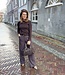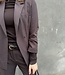 Mitch broek 27266. De broek heeft een blauwe krijtstreep en een plooien accent. De lengte is 114 cm en de taille is 36 cm. Gemeten bij een maat M.
