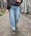 Mitch denim 3717. De denim is een wijdere barrel in een lichte wassing. De lengte is 105 cm en de taille is 38 cm. Gemeten bij een maat M. Materiaal is 96% katoen. 3% polyester en 1% elasthan.