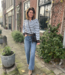 Mitch denim 3387-1. De denim heeft een donkere wassing en een studs accent aan de bovenkant. De lengte is 103 cm en de taille is 38 cm. Gemeten bij een maat M. Materiaal is 96% katoen. 3% polyester en 1% elasthan.