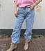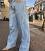 Mitch denim 209. De broek heeft rafel randen als accent en wijde pijpen. De lengte is 104 cm en de taille is 39 cm. Gemeten bij een maat 38. Materiaal is 63% katoen. 32% polyester. 2% viscose en 3% elasthan.