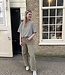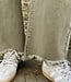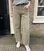 Model 3665KA. Barrel jeans in de kleur army green. De jeans is aan de onderkant gerafeld en heeft zilveren knoopdetails. De algehele lengte van de jeans is: 95 cm (gemeten op een maat M). Materiaal: 99% cotton en 1% elastaan.