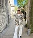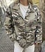 Model 11927. Legerprint jasje met embleems en twee zakken aan de voorkant. Het jasje heeft houtkleurige knoopjes.