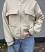 Mitch bomberjacket. Verkrijgbaar in beige en geel. Bomber is gevoerd. Materiaal: 67% Polyester en 33% katoen. Bomberjacket is one size gemeten van oksel tot oksel 58cm en 57cm lang.