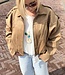 Mitch jacket V10735. Het jasje is een korter model van suedine/vegan stof en heeft zilveren rits. Materiaal is 90% polyester en 10% elasthan.