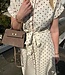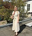Mitch jurk 460. De jurk heeft een bruine stippen print. knoop ceintuur en gouden knopen. In meerdere kleuren verkrijgbaar. De lengte is 131 cm en de breedte is 47 cm. Gemeten bij een maat S/M. Materiaal is 70% katoen en 30% linnen.
