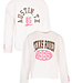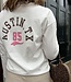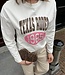 Mitch sweater 9963. De sweater is van een dunnere stof en heeft een grote tekst op de voor en achterkant. De lengte is 58 cm en de breedte is 53 cm. Gemeten bij een maat S/M. Materiaal is 100% katoen.