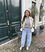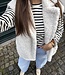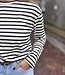 Mitch top 3234 met streepjes. De top heeft lange mouwen en is beige van kleur met blauwe strepen. De top is 61 cm lang en 49 cm breed gemeten bij maat ML. Het materiaal is 100% katoen.