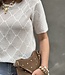 Mitch top 2422. De top is helemaal gehaakt en in de mooie kleur donkerbruin. De top is 62 cm lang en 44cm breed. Het materiaal is 80% viscose 20 % nylon.