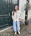 Mitch top 3234 met streepjes. De top heeft lange mouwen en is beige van kleur met blauwe strepen. De top is 61 cm lang en 49 cm breed gemeten bij maat ML. Het materiaal is 100% katoen.