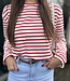 Mitch top 3234 met streepjes. De top heeft lange mouwen en is beige van kleur met blauwe strepen. De top is 61 cm lang en 49 cm breed gemeten bij maat ML. Het materiaal is 100% katoen.