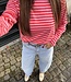Mitch top 3234 met streepjes. De top heeft lange mouwen en is beige van kleur met blauwe strepen. De top is 61 cm lang en 49 cm breed gemeten bij maat ML. Het materiaal is 100% katoen.