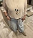 Mitch top 13759. De top is een wijder model van een voile stof met een knoopstrikje. Leuke ketting als accent die bij de top hoort. Materiaal is 100% polyester.