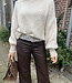 Mitch trui M235. De trui is van een grof gebreide stof en heeft wijdere mouwen en een hoge hals. In meerdere kleuren verkrijgbaar. De lengte is 56 cm en de breedte is 69 cm. Gemeten bij 1 maat. Materiaal is 38% acryl. 32% polyamide. 18% lana wol en 12% mohair.
