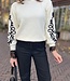 Mitch trui 85496. De trui is van een wollige stof en heeft een mooi borduur met parels accent op de mouwen. In meerdere kleuren verkrijgbaar. De lengte is 54 cm en de breedte is 53 cm. Gemeten bij 1 maat. Materiaal is 40% modal. 30% polyamide. 15% viscose en 10% elasthan.