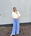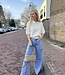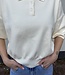 Mitch trui 89413. De trui is van een dun gebreide stof en heeft een kraagje en korte mouwen. In meerdere kleuren verkrijgbaar. De lengte is 53 cm en de breedte is 50 cm. Gemeten bij een maat S/M.Materiaal is 73% viscose en 27% polyamide.