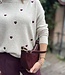 Mitch trui SH692. De trui is van een wollige stof met geborduurde bordeaux hartjes. In meerdere kleuren verkrijgbaar. De lengte is 62 cm en de breedte is 51cm. Gemeten bij 1 maat. Materiaal is 50% polyamide. 35% viscose. 10% wol en 5% elasthan.