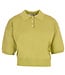 Mitch trui 89413. De trui is van een dun gebreide stof en heeft een kraagje en korte mouwen. In meerdere kleuren verkrijgbaar. De lengte is 53 cm en de breedte is 50 cm. Gemeten bij een maat S/M.Materiaal is 73% viscose en 27% polyamide.