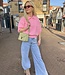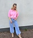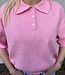 Mitch trui 89413. De trui is van een dun gebreide stof en heeft een kraagje en korte mouwen. In meerdere kleuren verkrijgbaar. De lengte is 53 cm en de breedte is 50 cm. Gemeten bij een maat S/M.Materiaal is 73% viscose en 27% polyamide.