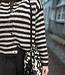 Mitch vest 920. Het vest is van een wollige stof en heeft een strepen print en gouden hartjes knopen. De lengte is 55 cm en de breedte is 70 cm. Gemeten bij 1 maat. Materiaal is 59% polyester. 32% polyamide en 9% laine.