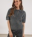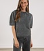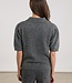 Nukus Sandra pullover. De trui heeft een grof glitter accent. korte mouwen en drukknopen bij de hals. Materiaal is 51% polyester. 34% polyamide. 9% metallic. 5% wol en 1% elasthan.