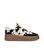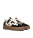 Poelman sneakers LPANEMONE-49OE5. De sneakers hebben een cowprint. zwarte suede neus en gouden accenten aan de zijkanten. De sneakers zijn van echt leer.