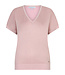 Red Button jerry sparkle SRB4812. Top heeft korte mouw en v-hals. In de stof zit glittertje verwerkt. Verkrijgbaar in beige en roze. Materiaal: 47% rami. 38% katoen en 15% metallic garen.