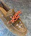 Loafers 203.01. leuke loafers van Shoecolate. Loafers hebben een oranje veter aan de voorkant. deze kan je vervangen voor een bordeauxrode veter (deze veters zijn inbegrepen bij de schoen.) . De loafers hebben leuke gouden details waar de veters doorheen zitten.