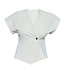 SistesPoint blazer GEVELA-VE. De blazer heeft een kleine overslag met 1 knoop en korte mouwen. In meerdere kleuren verkrijgbaar. Materiaal is 48% rayon en 52% nylon.