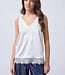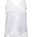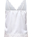 SistersPoint top Valerie-st1. De top is van een mooie glans stof en heeft een kanten rand langs de hals. Materiaal is 100% polyester.