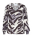 SistersPoint VYA-V.LS4. De top heeft een subtiel ribbel patroon. drukke print. vhals en lange pofmouwen. Materiaal is 95% polyester en 5% elasthan.