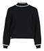 Vila trui Viloca. De trui heeft een opstaande kraag en gekleurde bies als accent. In meerdere kleuren verkrijgbaar. Materiaal is 70% viscose en 30% polyester.