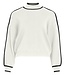 Vila trui Viloca. De trui heeft een opstaande kraag en gekleurde bies als accent. In meerdere kleuren verkrijgbaar. Materiaal is 70% viscose en 30% polyester.
