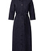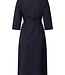 Zoso jurk Yvon. De jurk heeft een denim look met een knoopceintuur in de middel. De jurk is een lang model. Materiaal is 64% viscose. 31% polyamide en 5% elasthan.